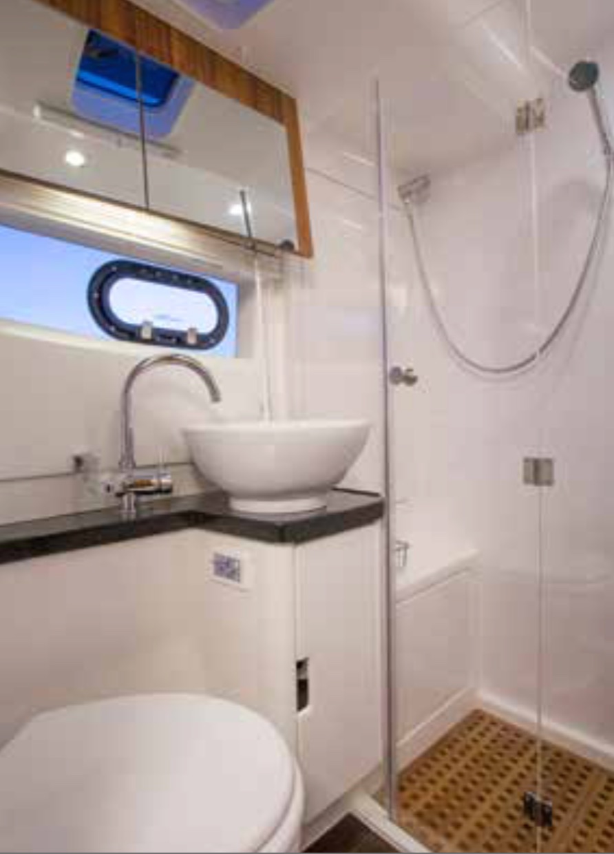 It is powered by two Volvo engines with shafts, the power offered ranges from 2 x 225 hp, 2 x 330 hp or 2 x 370 hp. Simple but effective propulsion technology that is easy to maintain and has low revs allows you to do very long distances.