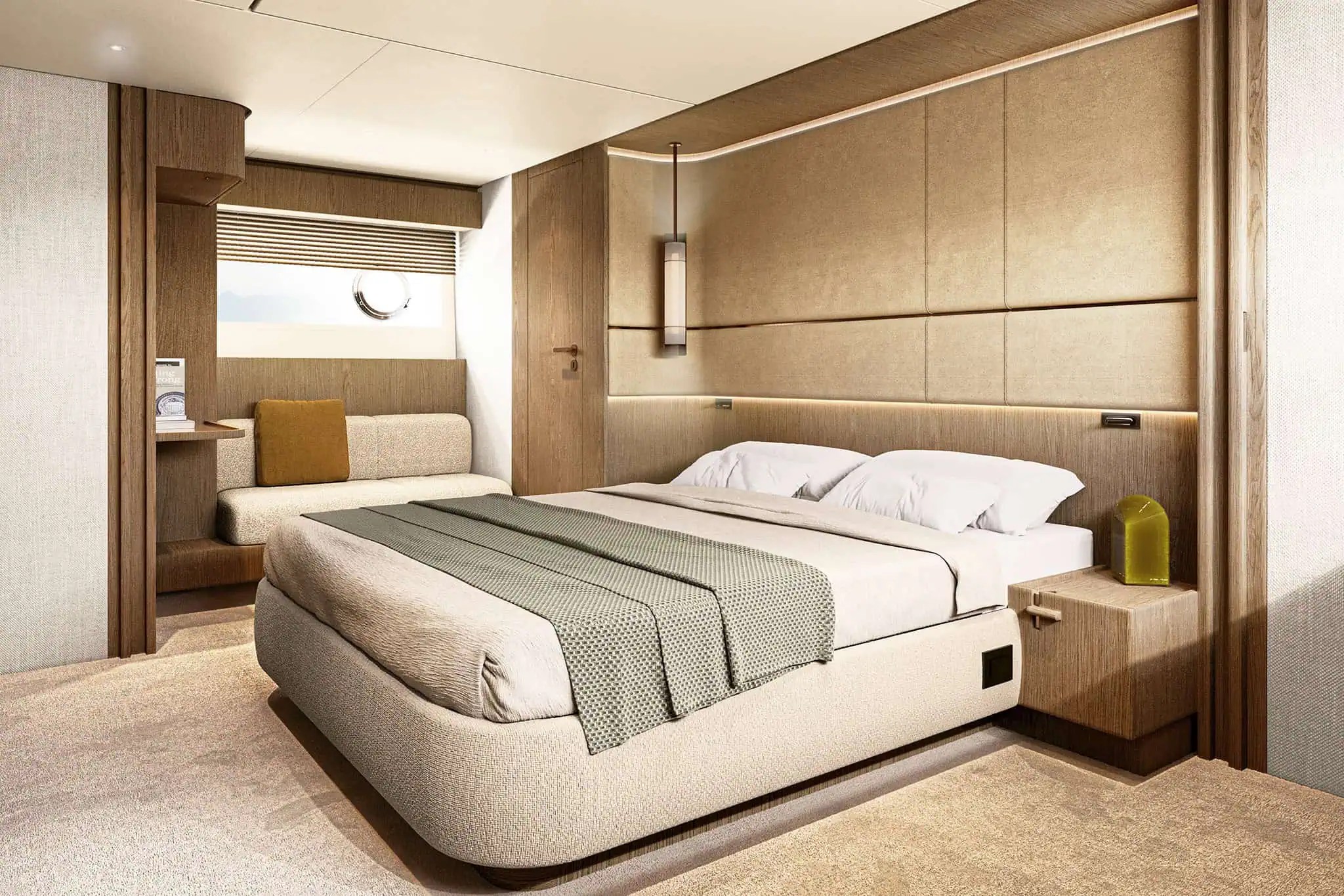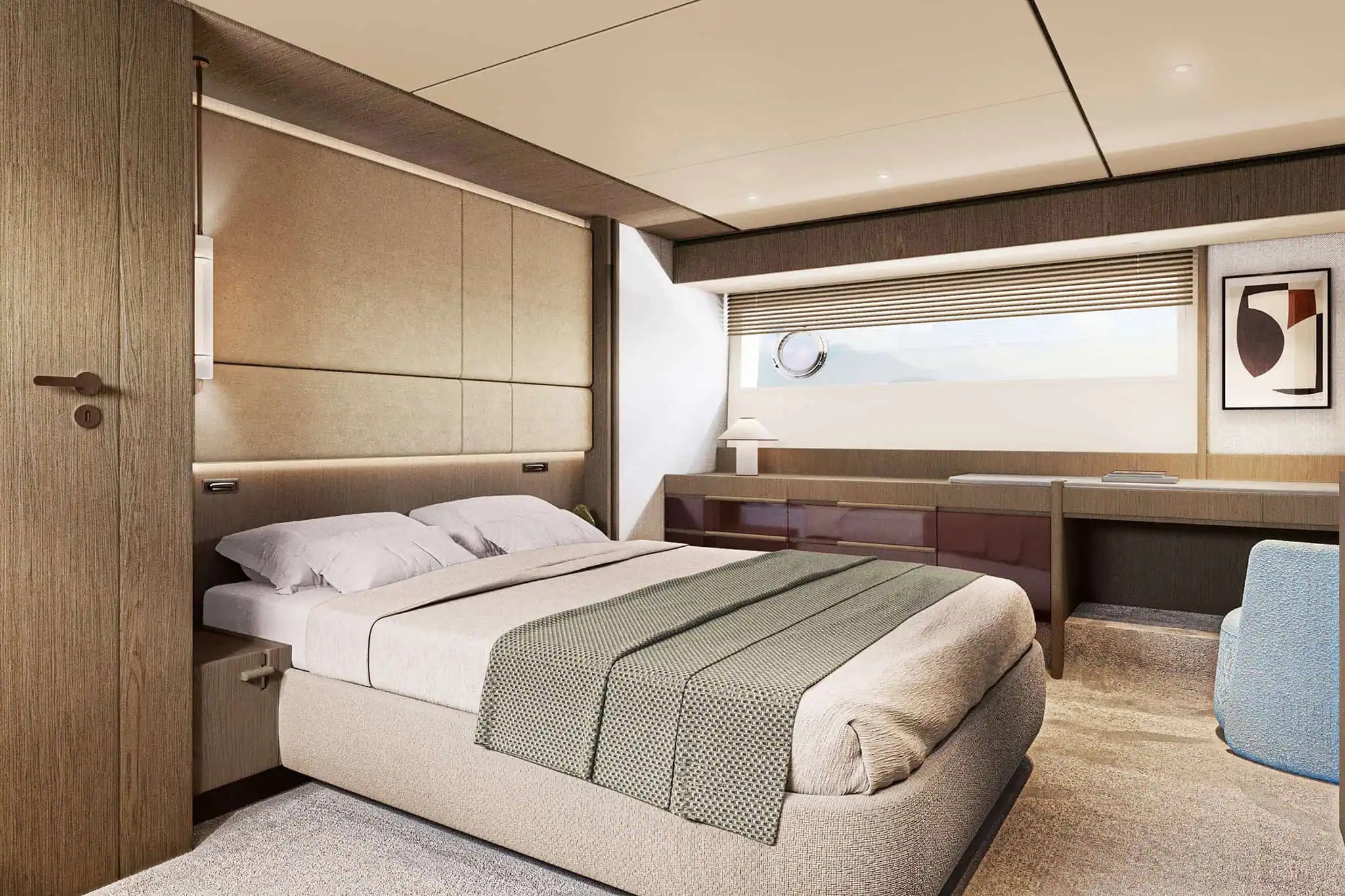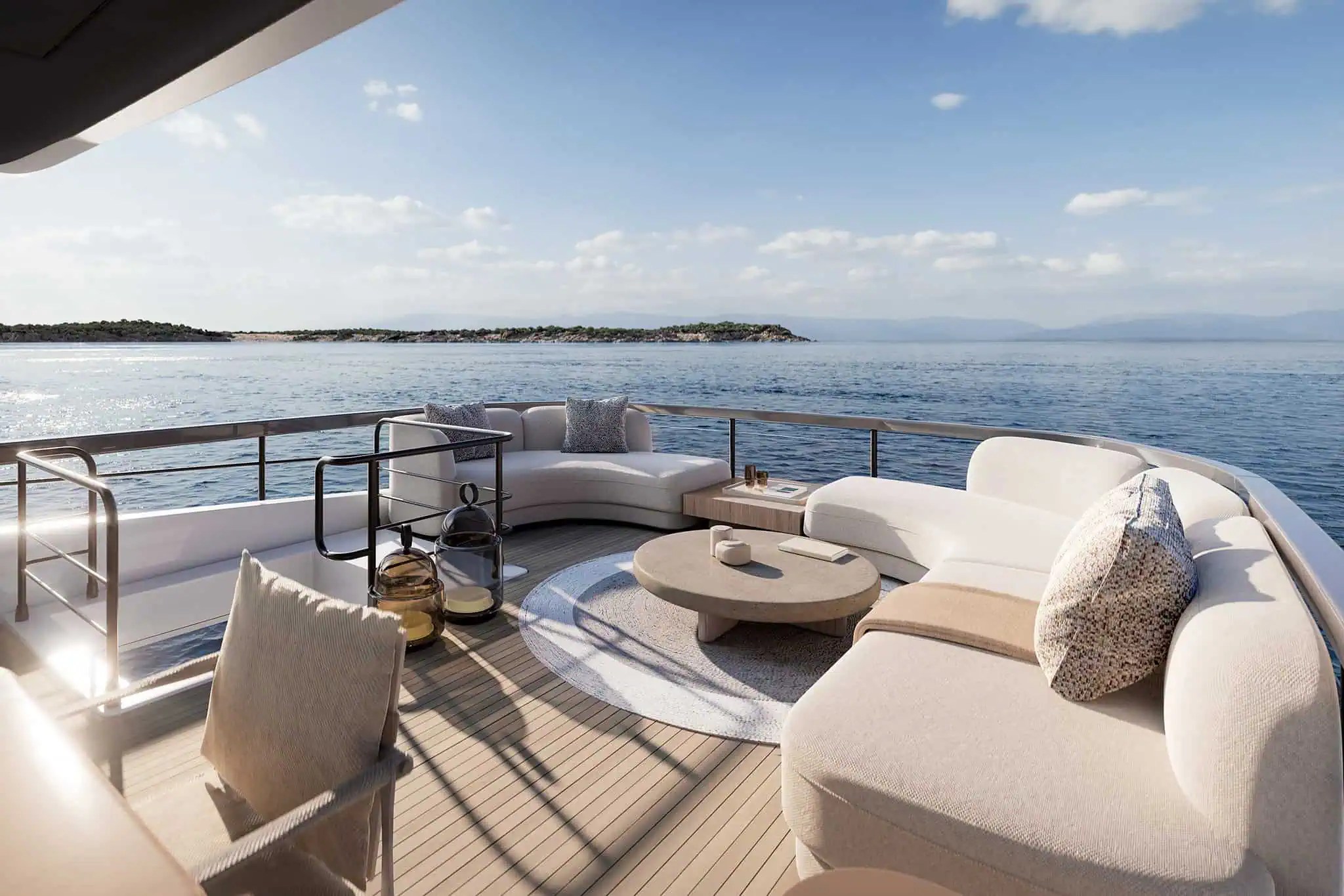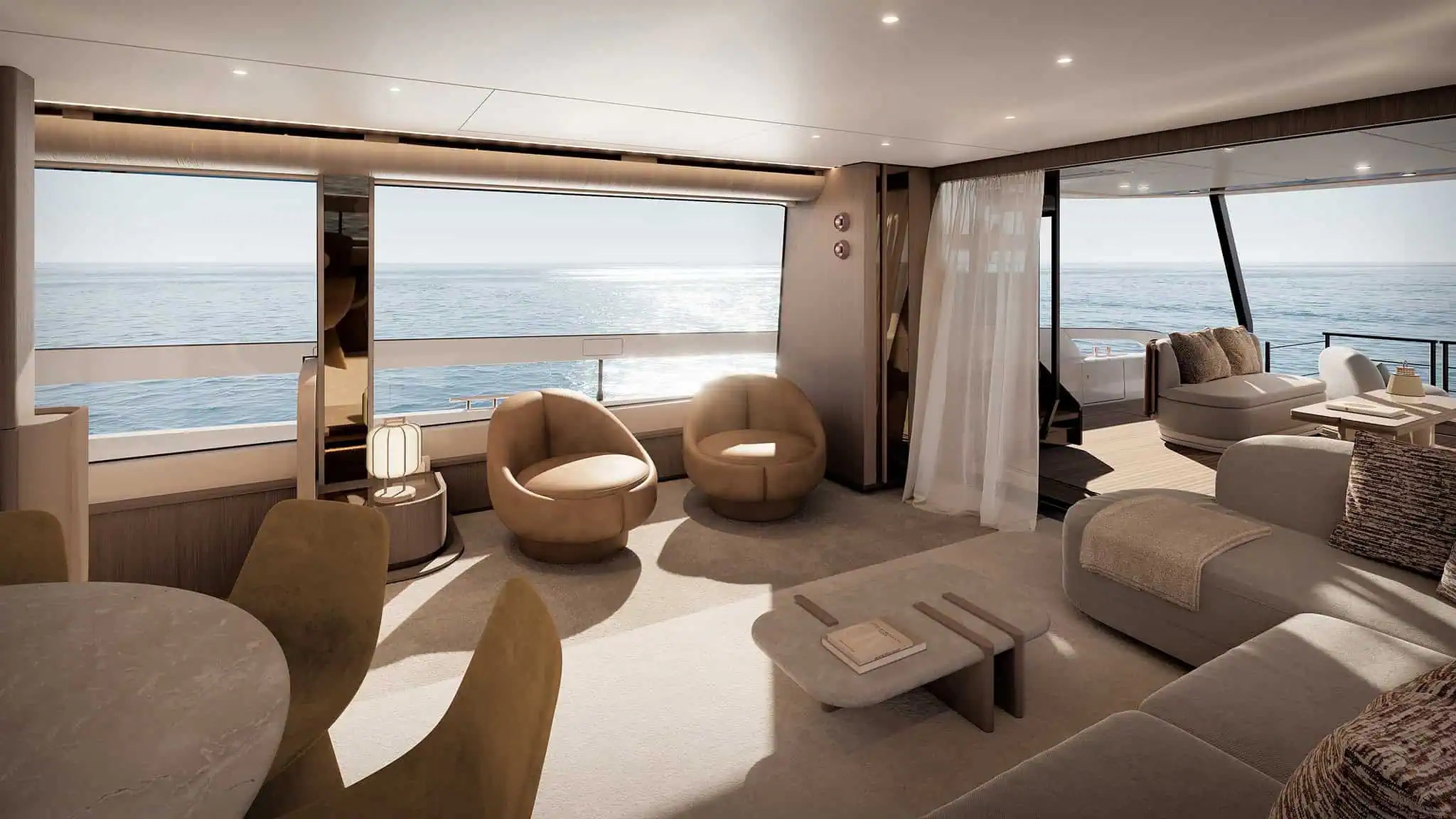 À l’intérieur du superyacht, Fantolino poursuit sa collaboration avec Azimut pour un troisième projet, façonnant les intérieurs autour d’un style à l’élégance douce, empreint d’harmonie et d’équilibre.